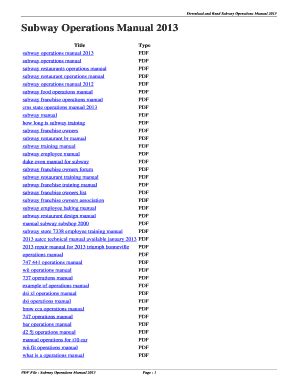 Download SUBWAY OPERATIONS MANUAL Ebook PDF